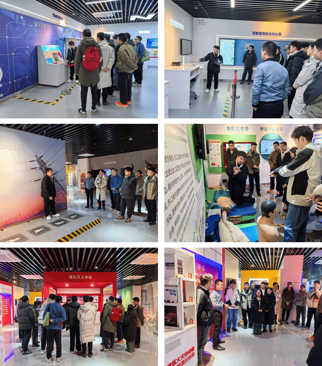 安全教育体验馆开展安全教育活动。此次活动分别由学院辅导员肖强教授和乔永辉教授带队,通过参观学习和互动体验,同学们深入了解了在生活和学习中可能遇到的各类安全隐患,并掌握了应对突发事件的实用技能。