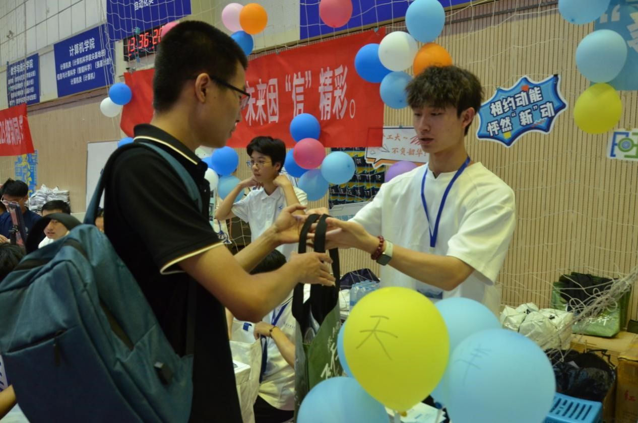 完成内场报到后,新生们来到外场。微风吹拂着写满憧憬的便笺,也拂过一张张天真灿烂的笑脸。“工大第一照” 的活动现场,新生们纷纷与吉祥物 “小涡”、学院立牌合影,在镜头前定格初入校园的雀跃。旁侧的盲盒区同样热闹,新生们轮流抽取,拆开时的惊喜笑容,与合影时的欢颜相映成趣。这些充满学院印记的互动,悄悄拉近了新生与pornhub