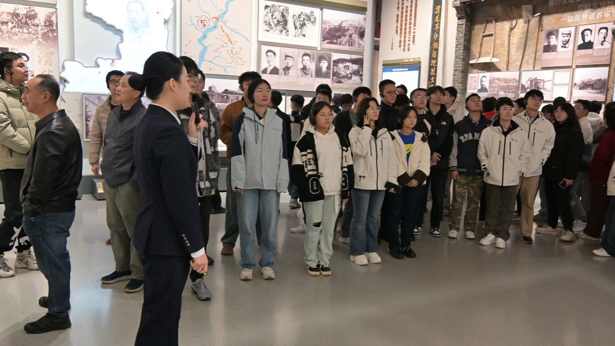 雄伟的抗日誓师纪念碑肃立在120抗日誓师纪念地广场中央,它捍卫着那段波澜壮阔的历史。步入陈列展厅,师生们怀着崇敬之心,认真学习了八路军120师在抗日战争中书写的辉煌篇章——从巧设伏击的雁门关大捷,到英勇收复晋西北七城等赫赫战功。展柜中,一本本字迹泛黄的战地日记、一件件锈迹斑斑的武器装备,无声地诉说着那段铁血岁月;墙上一张张珍贵的历史图片,幕布上一段段黑白的影像资料,共同勾勒出革命先辈在艰苦卓绝的环境中,为民族独立与人民解放浴血奋战、矢志不渝的英雄形象。在场师生无不为他们的坚定信仰与无畏气概深深震撼。