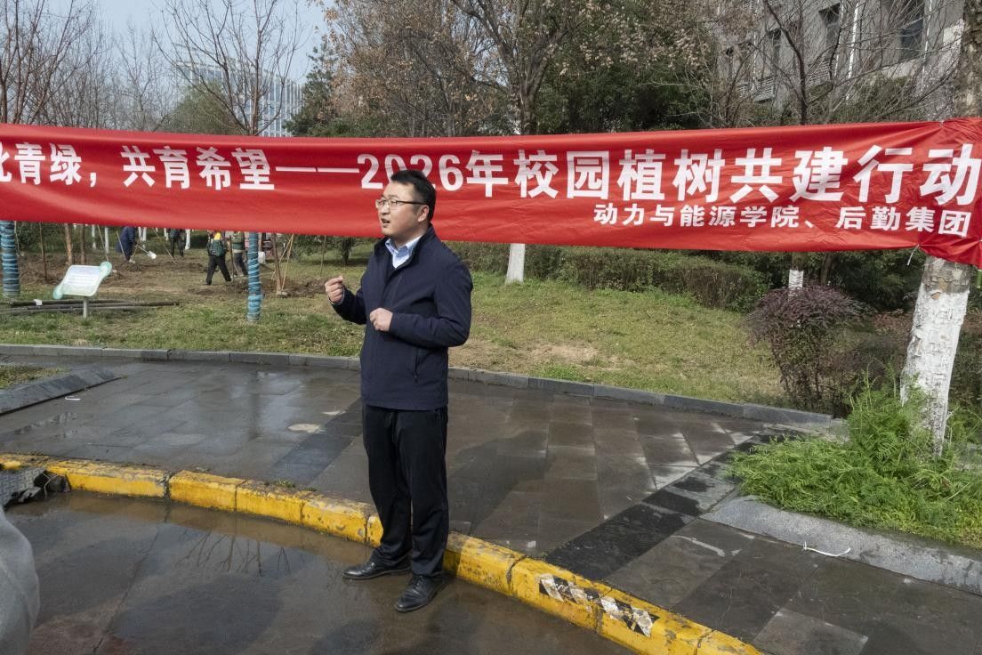 活动伊始,后勤集团党委副书记邱若娟致辞,她表示学院与后勤集团的深度协同是构建优美育人环境的重要基石,并寄语全体参与者不仅要当好绿色的“播种者”,更应成为生态的“守护者”,同时,她希望动能学子能如新栽树苗一般,扎根沃土、向阳生长,在未来绽放蓬勃生机。